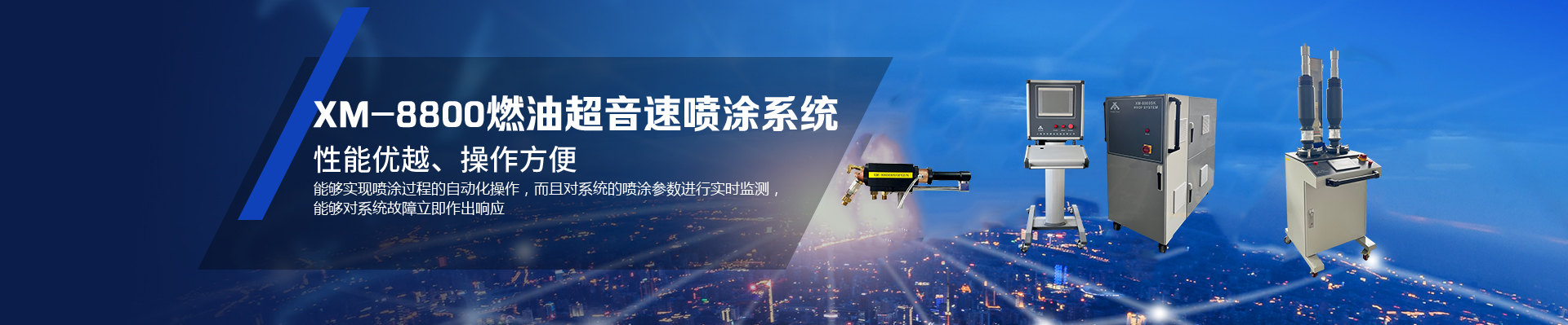 上海休玛喷涂机械有限公司是专业从事热喷涂加工与设备制造研发的企业,是国内少数几家能独立生产电弧喷涂设备、等离子喷涂设备和超音速喷涂设备的厂家之一。公司拥有一批技术人才专门致力于热喷涂设备,材料以及工艺等方面的开发与生产。吸收国外技术自主研发新型高能等离子喷涂设备与超音速喷涂设备以及电弧喷涂设备,在国内率先开发了触摸屏控制的等离子设备XM-80SK、XM-100SK、XM-120SK等离子喷涂设备、燃气超音速喷涂设备(XM-5000)、煤油超音速喷涂设备(XM-8800、XM-JP8000),目前已广泛运用于喷涂行业,涂层质量达到国外同类产品水平,受到国内外客户的一致好评。